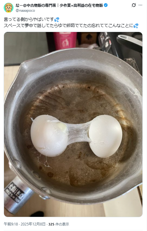 ゆで卵ゆでてたの完全に忘れてて、鍋の水が蒸発しきってカラカラに💦