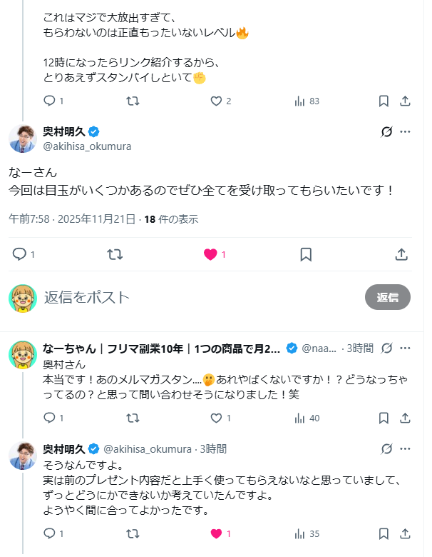 メルマガ興味なくても、 ブログ・物販・AI・Xアフィリ系の前線実践者のリアルレポートも超豊富だから、これだけでも貰う価値アリすぎ✨